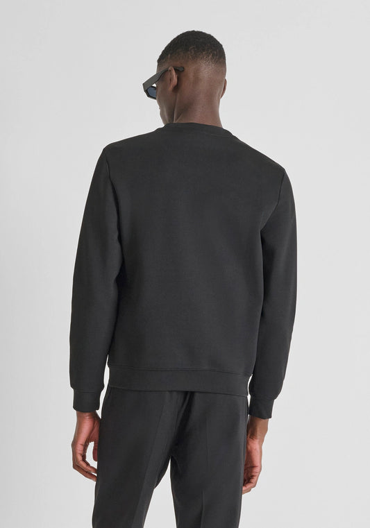 ANTONY MORATO REGULAR FIT CREW-NECK SWEATSHIRT IN STRETCH SCUBA FABRIC WITH RUBBER LOGO BADGE