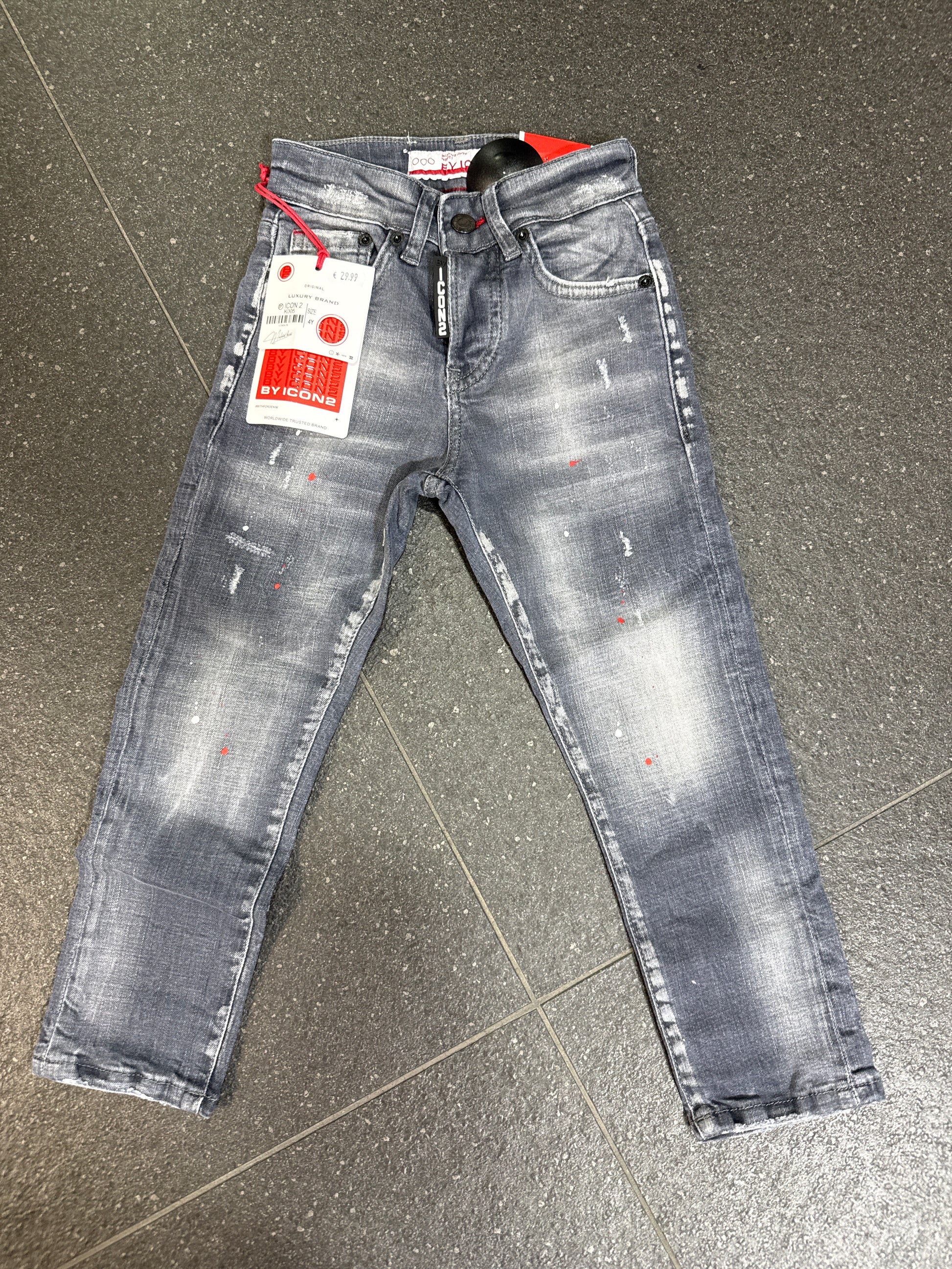 The Icon 2 Grey jeans for kids are crafted from 100% cotton, ensuring breathability and comfort. This material is known for its durability, allowing for extended wear without compromising comfort. Ideal for active children, these jeans offer a versatile option suitable for various occasions.